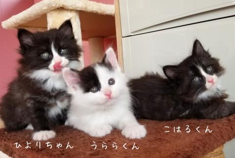 うららくん♂、こはるくん♂、ひよりちゃん♀と名付けました。