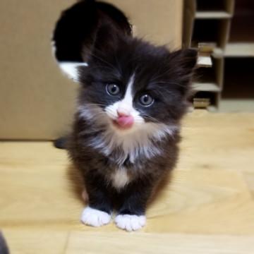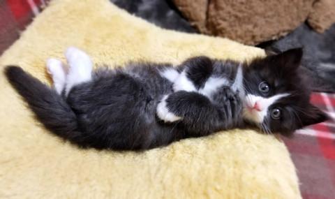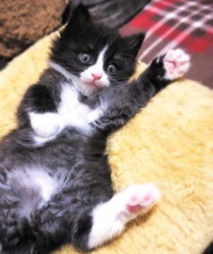 生後1ヵ月半ほどの、かわいい白黒の女の子です。
