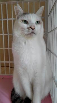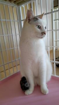 白地に少しきじ柄が入ってます。尾長。とても温厚な性格で、雌猫に人気です。