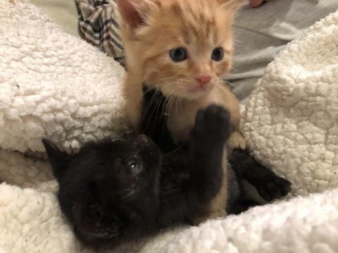 茶虎・黒猫兄妹とママ猫さんと一緒に保護。