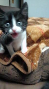 生後二日目くらいのへその緒のついた状態で母猫が慌てて引っ越しをしている最中その家の方が保護されました。