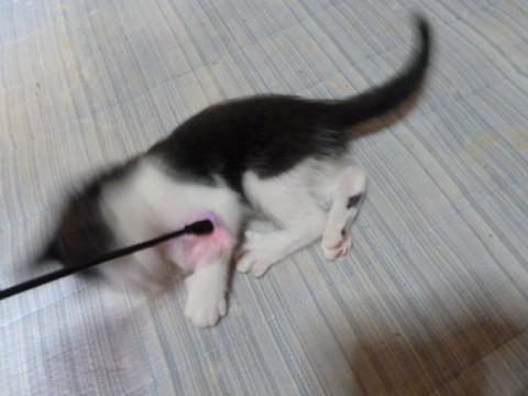 人懐っこく兄妹と元気に遊んでいます。オモチャで遊ぶのが大好きです。