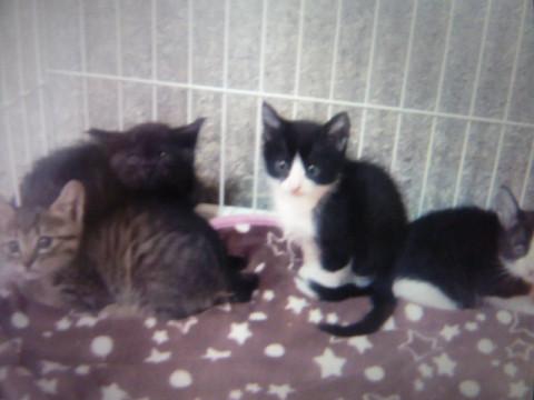 それで見に行くと目も開いていないいない子猫が4匹段ボールに入れられていました。取り合えず知り合いが雨風から守るために