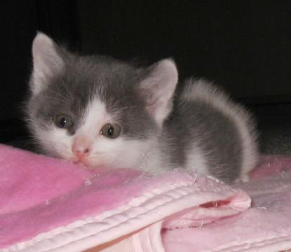 我が家の庭にあった箱のなかで子ネコの鳴き声がするのでのぞいて見ると小さな4匹の子ネコがいました。このムギちゃんはそのうちの1匹です。すぐに保護しましたが、家では複数匹のネコを飼っていてとても飼う余裕がありません。野良ネコとして生きるより安全で健康的でそして家族に愛されて生きるチャンスをあげたいと思って里親さん募集をすることにしました。