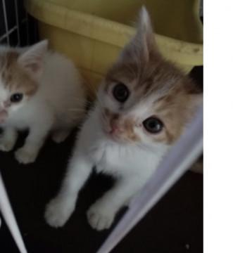 少々、目ヤニがついている程度ですがとても元気ですご飯も良く食べて兄弟で遊んで居ます。