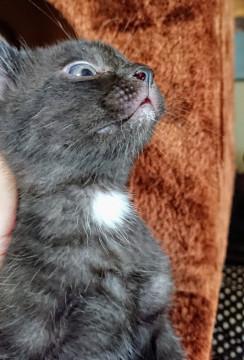 完全な黒猫ではなく、首に白いスタイをつけたような毛色をしています。