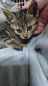 知り合いの家のまわりにいました。母猫も兄弟もみあたらず、ひとなれしているところから、誰かに捨てられたんじゃないかと思われます。知り合いでもウチでもこれ以上は飼うことができず、里親さんをおねがいします。