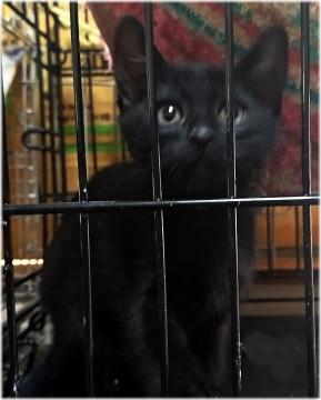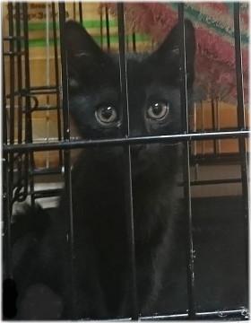 生後約2ヶ月の黒猫、元気いっぱいの女の子。