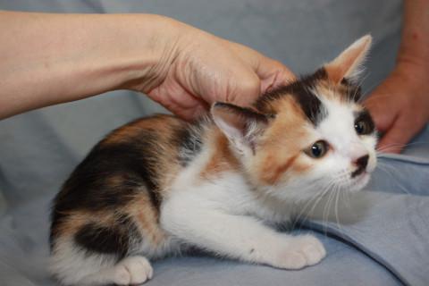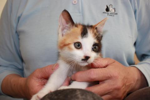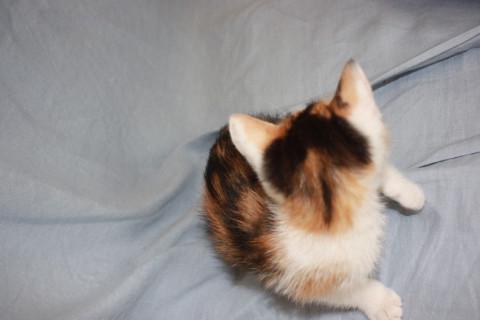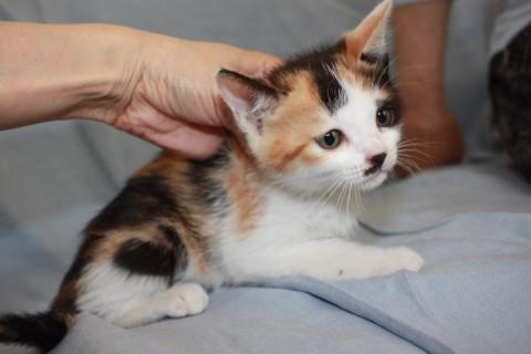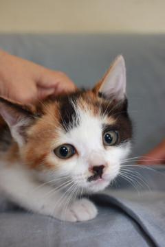 可愛い三毛猫、しいちゃんです。ちょび髭がチャームポイント。十分人馴れしており、(今の所)おっとりさんです。