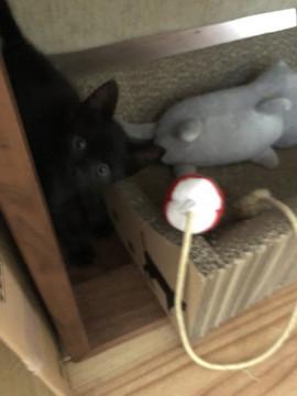きょうだいの黒猫とキジトラと仲良く遊びます。