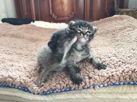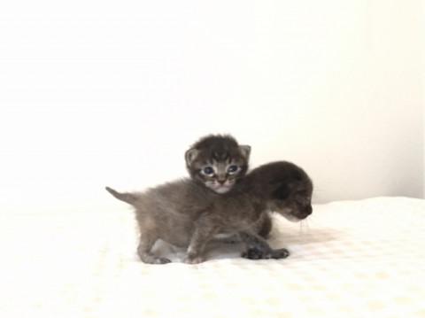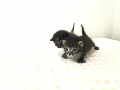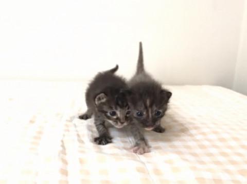 行ってみると・・目があいたばかりの2匹が紙袋に入れて捨てられてました。