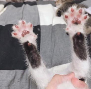 甘えん坊で手を置いただけでうるさいくらいゴロゴロ言います。歩いていると足に駆け寄ってきてそこでまたゴロゴロ!