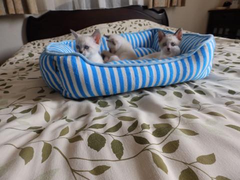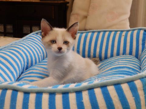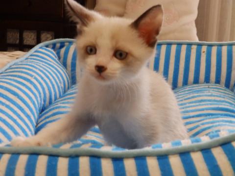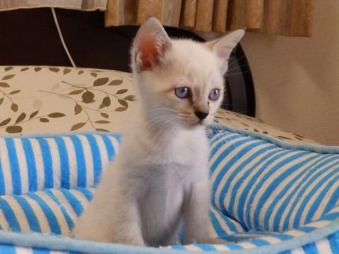 ブルーアイです。白地に、鼻と耳としっぽがグレーです。