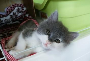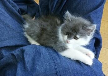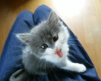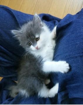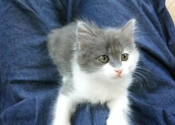 グレーに白の変形はちわれっぽい、ふわふわの女の子