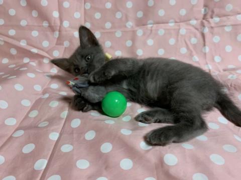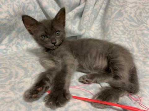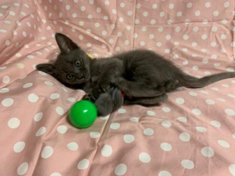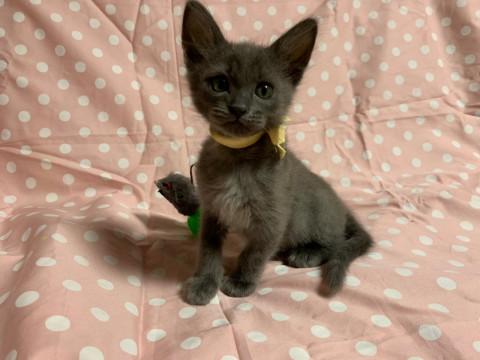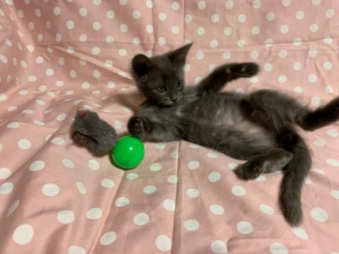 生後二週間入り授乳で育てました。人懐っこい甘えんぼで元気な男の子です。グレーの毛色はビロードのようです。成猫・子猫ともに過ごしており仲良く過ごしております。