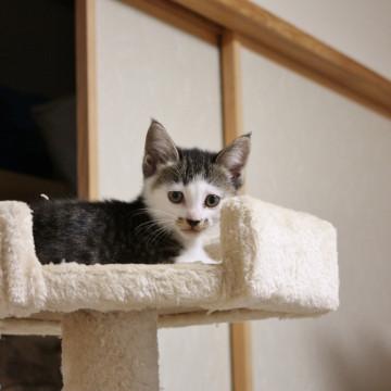ママ猫にべったりなため、あまり人慣れしていませんが、