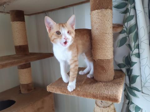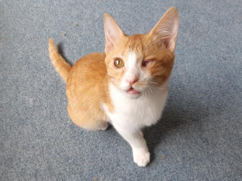 【性格】とても人懐っこく天真爛漫な女の子です。物怖じすることなく保護初日からゴロゴロ甘えてくれました。元のお宅では犬と暮らしていたため犬も猫も平気なようで家の飼い犬ともすぐに仲良しになりました。片目のハンデも全く感じさせず元気に部屋中駆け回って遊んでいます。