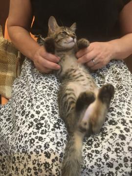 キジ柄尾尻長く綺麗な、馴れ馴れデレデレな子です。キュウイちゃんと