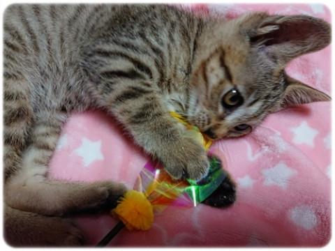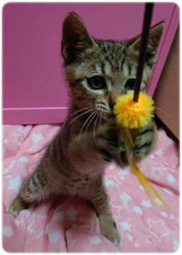 母猫が育児放棄したのか、この子だけ草むらでうずくまっているのを保護しました。