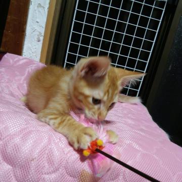 子猫が走り出すようになってそのことに気付き、びっくり仰天された家人からの通報で保護し、里親様を募集させていただくことにしました。