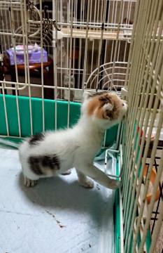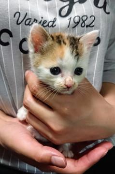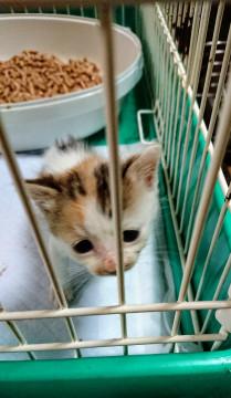知人が母猫と子猫2匹いるのを見つけ、捕獲するためにマークしていたのですが、母猫が引っ越しをした際にこの子だけ取り残され、鳴きながらさ迷っていたとのことです。