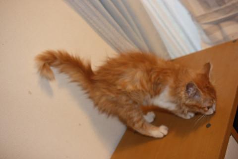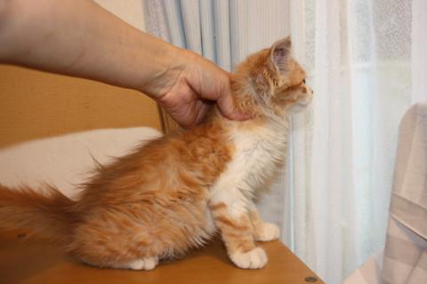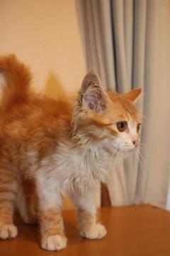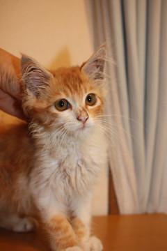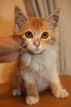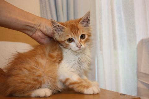 可愛いもふもふ半長毛茶白のにゃろめくんです。大変人懐こく目があっただけでゴロゴロです。他の猫ちゃんにも威嚇などなくフレンドリーです。
