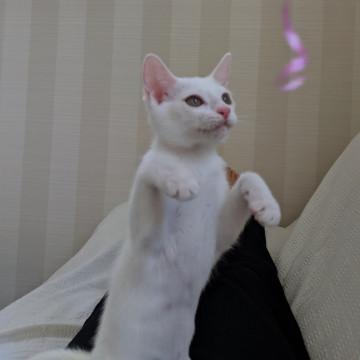 ひとり遊びも上手ですし、猫との共同生活にも馴れています。