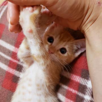 生後2週間ぐらいで、公園の茂みの中に捨てられているところを保護いたしました。