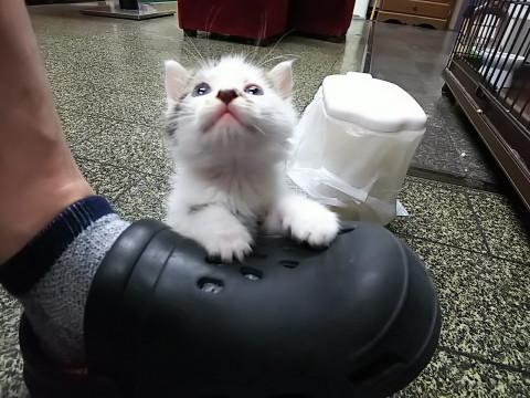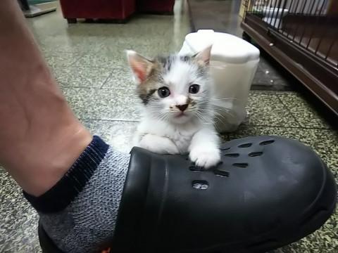 私の勤務先で保護をしていて複数の人に触れるためかとても人が大好きで、特に靴が好きなようで靴に寄って行きます。
