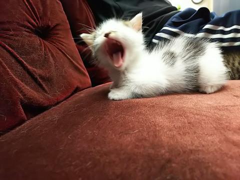 保護をした当初はとても体重が軽く心配でしたが今はご飯もミルクももりもりととって日に日に大きくなっています。目ヤニが出ていますが動物病院に連れて行ったところ点眼治療をするほどではないとの事でしたので定期的に拭いています。