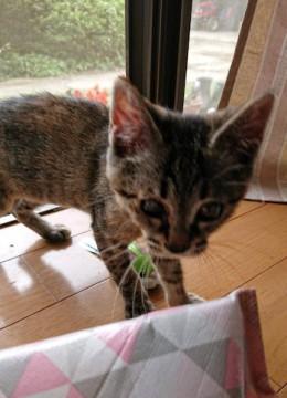二か月で保護時、400gしかなく極度の栄養失調状態でしたが、現在は1キロ半、小柄ですが子猫らしく元気いっぱいで、食欲もあります。