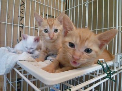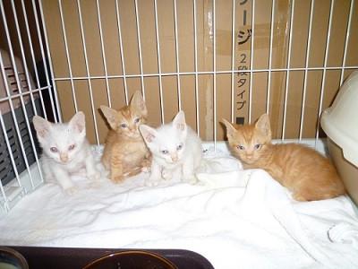 〇 2ヶ月の白猫(オスとメス)と茶トラ(オスとメス)。