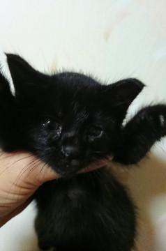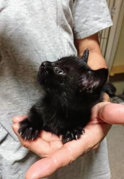 黒猫のつぶあんちゃんです。小さい割によく食べて、とても活発です。かけっこも上手になってきました。