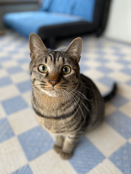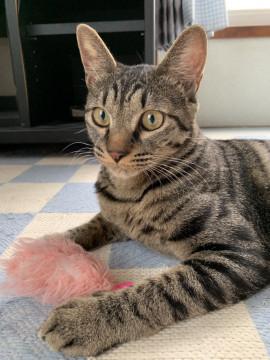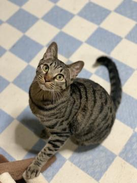 キジトラ柄の尾尻長く綺麗な、なかなかのハンサムボーイです。