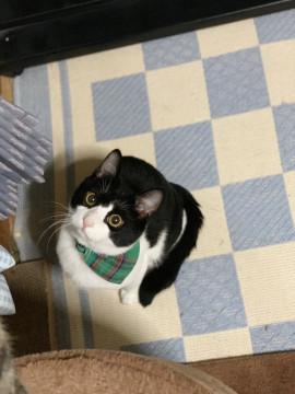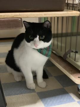 お目クリクリのハチワレ擬き?少し模様がズレてます。可愛らしい。