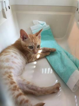 お母さん猫とはぐれてしまったようでさまよっていたところを保護しました。