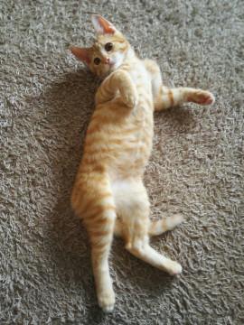 一生懸命遊び、眠る時はお腹の上でゴロゴロ言いながら眠ります。