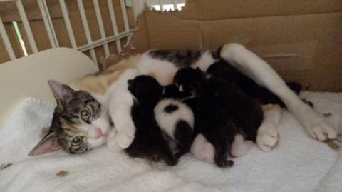 横浜市内の住宅地で野良としていたお腹の大きかった母猫を保護、その3日後に出産しました。