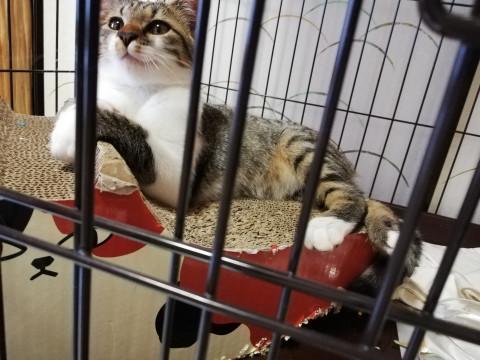 妹が駅の近くの工場で保護した三匹の中の一匹です。既に保護猫を家族にしているため、募集してみました。現在は猫仲間さんの自宅で兄弟と一緒に過ごしています。