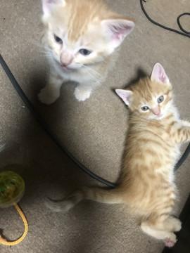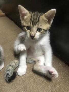 薄茶虎ちゃん、女の子、怖がりだけど兄弟とは走り回ってます。