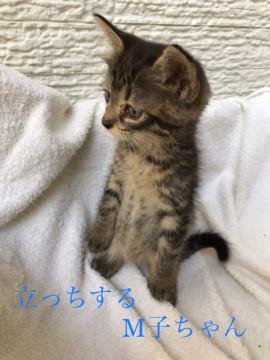 ちょこんと立っちする姿が可愛いM子。額にマジックで書いたようなM字があります。チビは無条件で可愛いです。2匹づつきょうだいで希望です。