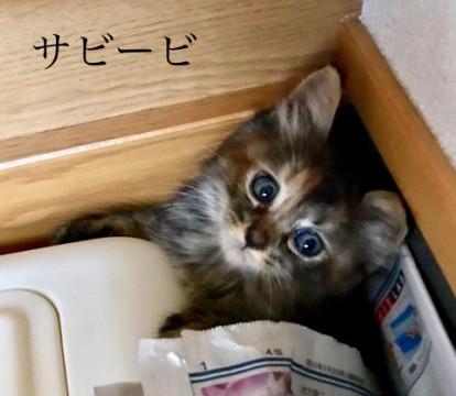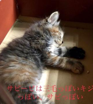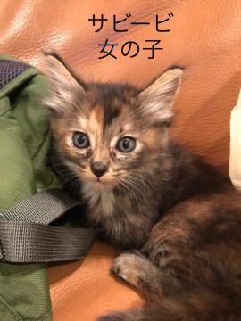 サビ三毛っぽい500g、とても元気で可愛い顔をしています。将来長毛になりそうな気配がします。小さい4きょうだいなので2匹づつで希望しています。