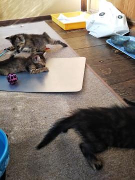 黒猫のオス、サビ猫、キジトラのメスが1匹です。