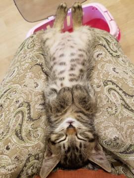 人馴れバッグンの可愛らしいふづきちゃん。お目くりくり、綺麗なキジ柄、尾尻真っ直ぐ。でも、かわい子ちゃんだけでなく、確りと自己主張します。