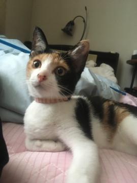 知人に可哀想な環境で飼われている子猫ちゃんがいるとの相談があり保護することになりました。以前の飼い主さんが酔って暴力を振るったり、トイレはそのままだったりと、聞いていて切なくなり、里親さんを探すために引き取りました。しかし、家には4匹の引取り猫の先住猫ちゃんがいるので、これ以上飼うことできないため、里親さん募集をするに至りました。