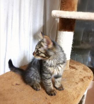 耳の毛が特徴的なふんわりしたキジの長毛猫さんです。