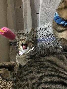 4兄弟、猫じゃらしで遊んでいますが、控えめで女の子らしい