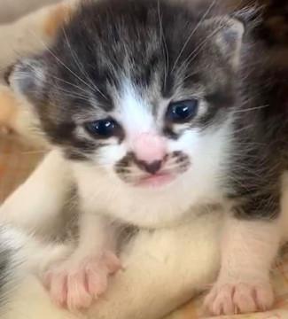 キジ白で、お口の周りにある模様がなんとも可愛く癒し系のお顔です。