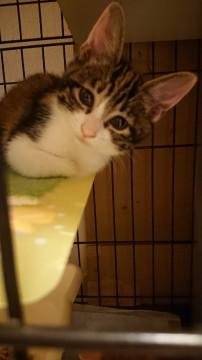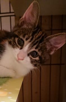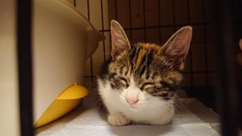 民家の車庫に親と一緒に隠れているのを発見され、そのお宅では飼えないということで保護し里親募集しております。