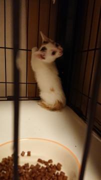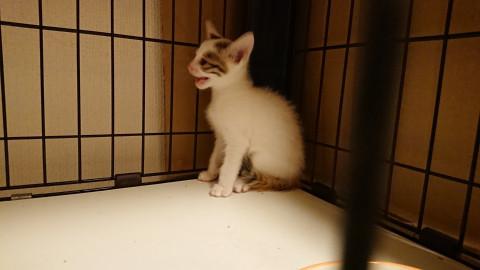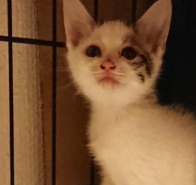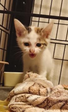 民家の車庫に親と一緒に隠れているのを発見され、そのお宅では飼えないということで保護し里親募集しております。